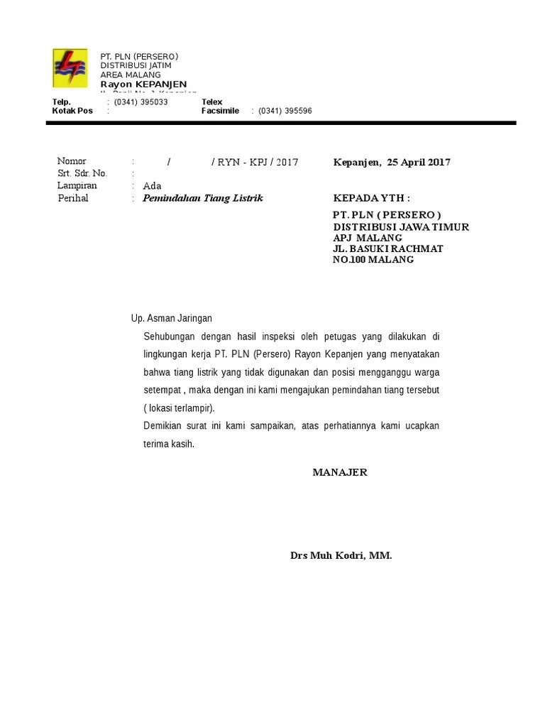Contoh surat permohonan pemasangan listrik pln pasang baru nomor.