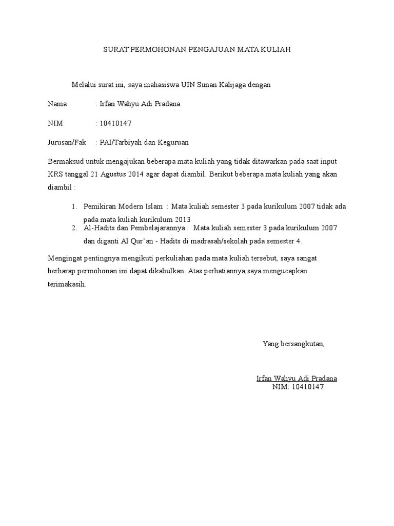 Contoh Surat Permohonan Penambahan Mata Kuliah : Surat Permohonan Penambahan Sks Pdf - Bagi mahasiswa prodi teknik industri yang belum mendapatkan kelas mata kuliah semester ganjil 2015/2016 ini silahkan mengajukan permohonan .. Di tempat dengan hormat, dengan perantara surat ini saya ingin mengajukan permohonan ujian perbaikan nilai pada mata kuliah . Permohonan surat keterangan bebas mata kuliah. Kelompok kuliah kerja nyata 76. Yogyakarta, 15 februari 2012 hal : Format penulisan yang digunakan dalam membuat surat permohonan yakni menggunakan ukuran dan model huruf yang sesuai serta rapi.